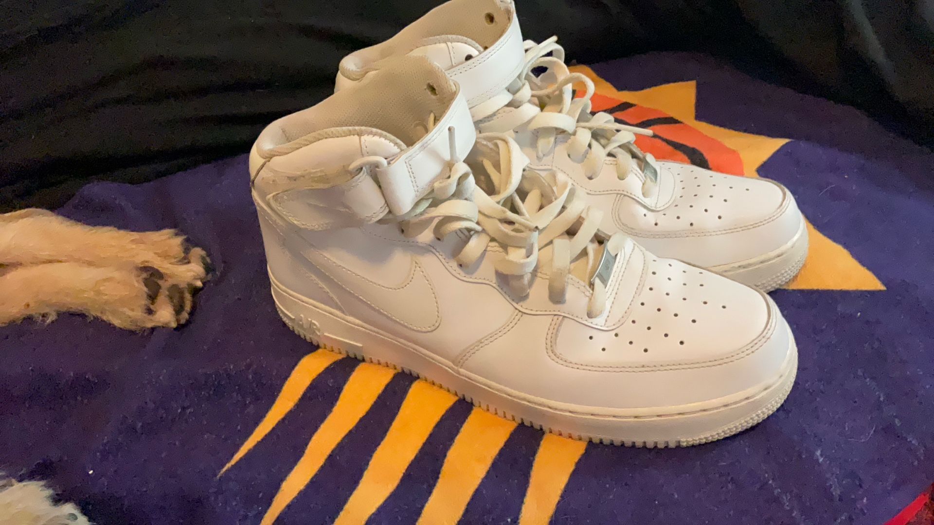 White Air Force Ones . SIX Months Old. Size 11 true fit.