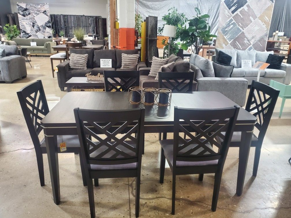 Beautiful 7 Pc Black Dining Set With Leaf (New)