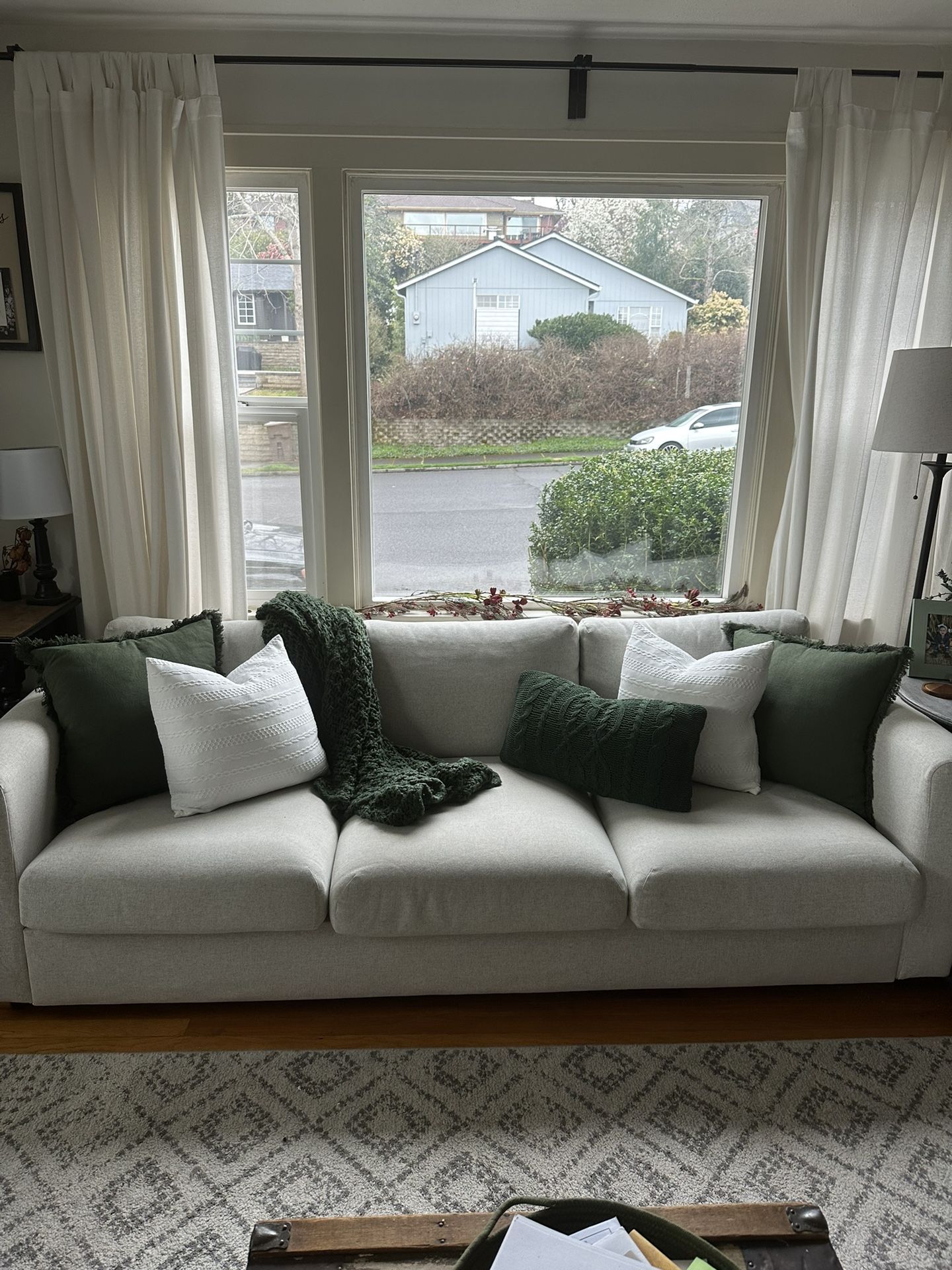 Couch barely used. No pets, no smoke, clean. Moving and cannot take it with me. All fabric is removable and washable.