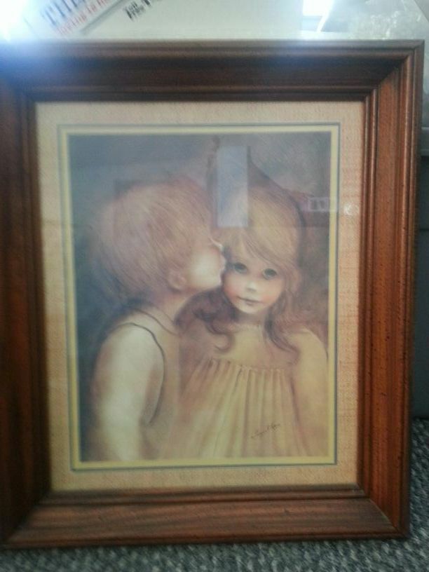 Cute framed print under glass.. 17 1/2"W x 29 1/2" H