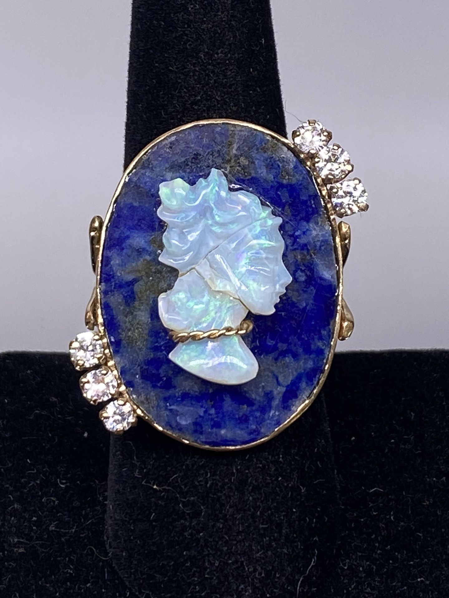 Gorgeous cameo ring, accent cz’s set in 14K gold