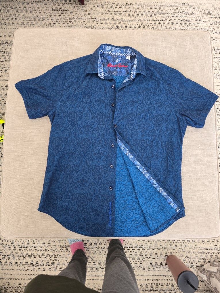 Robert Graham short sleeve classic fit shirt, size M. Tones of blues, with accent trim. Very nice.