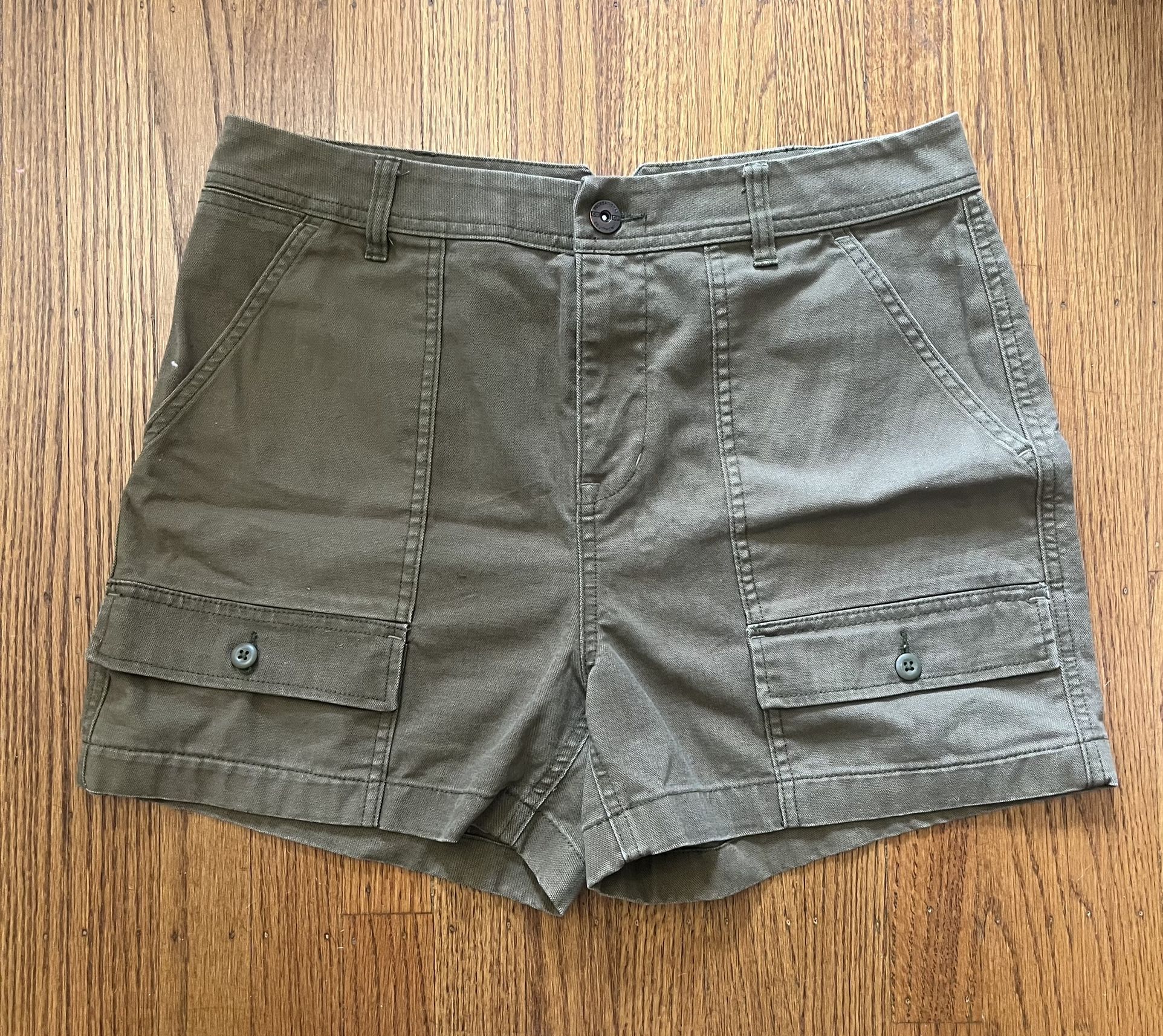 REI Co-op Women’s Khaki cargo shorts. Great for hiking, very comfortable, lots of pockets. Size 12