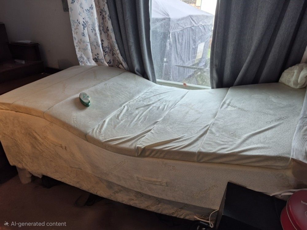 Tempur Pedic Ergo Raven bed. The mattress has a pillow top. Twin size. Adjustable base. Both the feet and the head can be raise in multiple positions. Also has massage features. Look at the picture of the remote. Works great.