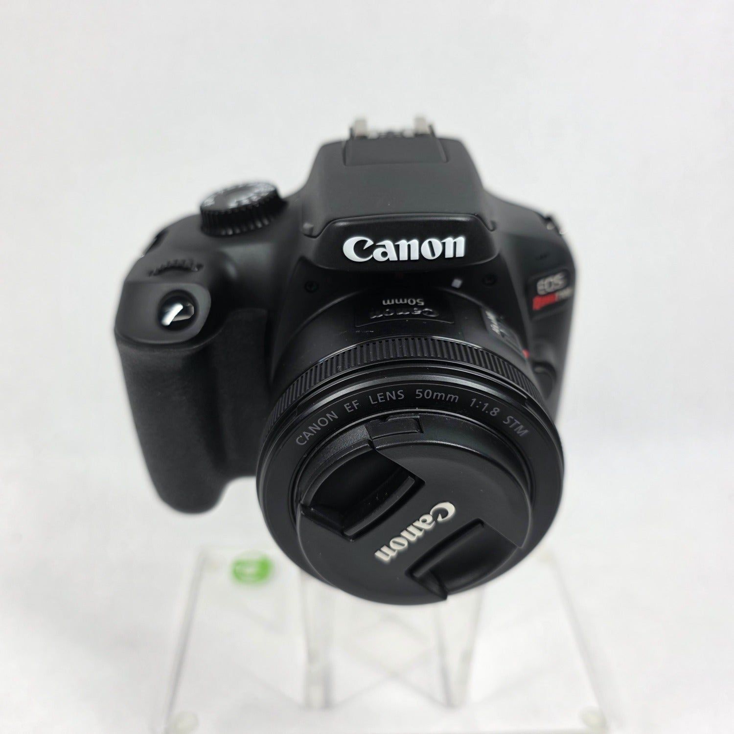 Canon EOS Rebel T100 18.0MP Digital Point-And-Shoot Camera N/A Shutter Count Items included in this sale: Canon EOS Rebel T100 18.0MP Digital Point-And-Shoot Camera N/A Shutter Count Canon Battery Canon Neck/Shoulder Strap Canon Lens RF50mm F1.8 STM Canon Lens EF 50mm 1:1.8 STM Canon Lens EFS 18-55mm No SD Card Sorry, no box or anything else included *Please note, if it is not listed it is not included - such as power cables or other accessories. Specifications: Collection Digital Camera Sub-Collection Canon Digital Camera Brand Canon Model EOS Rebel T100 Series Canon EOS Rebel Shutter Count N/A Megapixel 18.0MP Video Recording N/A Color Black Type Digital Point-And-Shoot Camera Release Year 2018 Mount Type Canon EF/EF-S Condition Good UPC 657768509032 Serial# 542072015520 Cosmetic condition: The camera body is in good cosmetic condition with some minimal wear. The LCD and mirror are in good condition with no major wear, scratches or scuffs. Please view our close up photos, as these are taken of the actual item being offered for sale. Functionality condition: This camera has been tested and is fully functional.