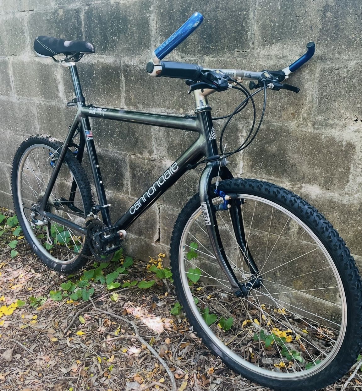 Cannondale M700- vintage Made in USA Lightweight Original metallic charcoal paint with a fade depending on angle and lighting Very cool paint Original parts Pepperoni fork Ritchey Rock 440 wheels Coda blue anodized canti brakes 21.5 or 55cm seat tube center to top 59cm top tube center to center Had the normal scratches and some scrapes but not major. Will need a tune up as has not been ridden in many years.
