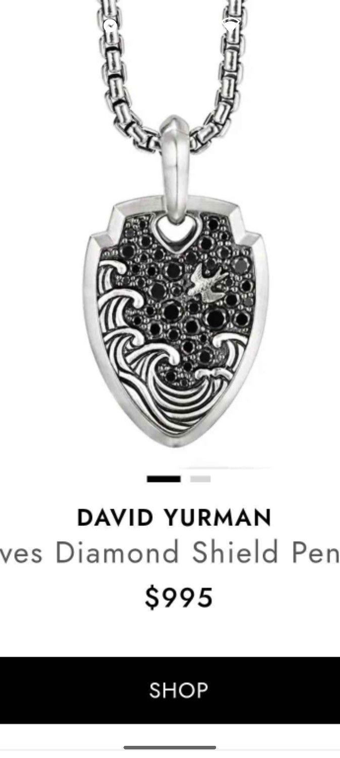 David Yurman Waves Pendant With Black Diamonds And Chain