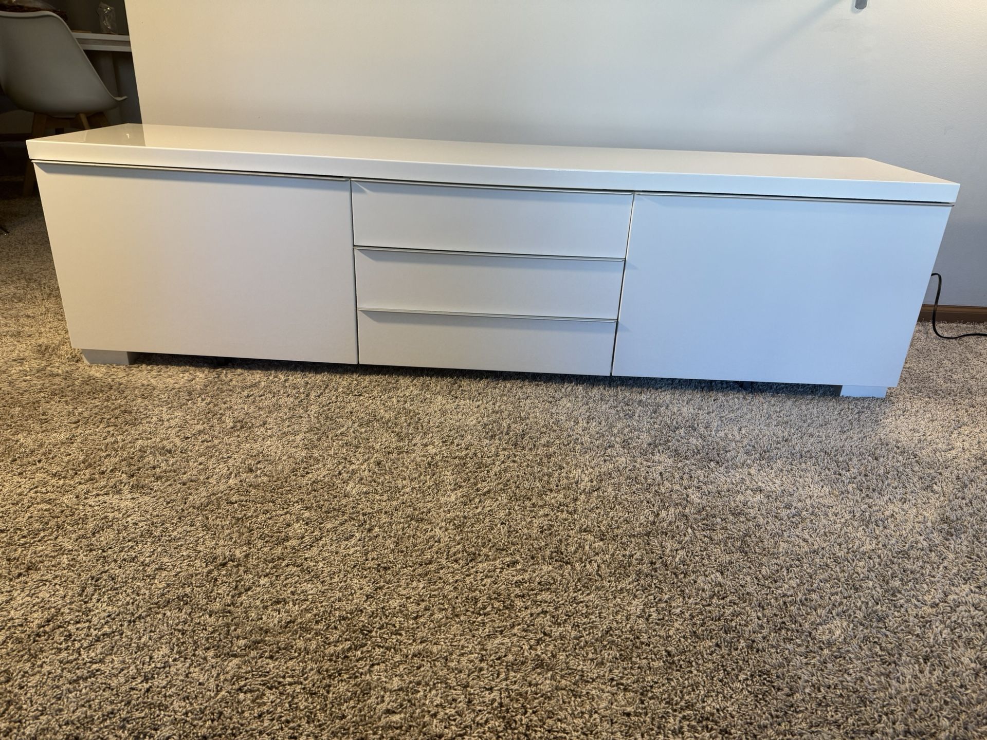 IKEA BESTÅ BURS TV bench, high-gloss white, 70 7/8x16 1/8x19 1/4 "
