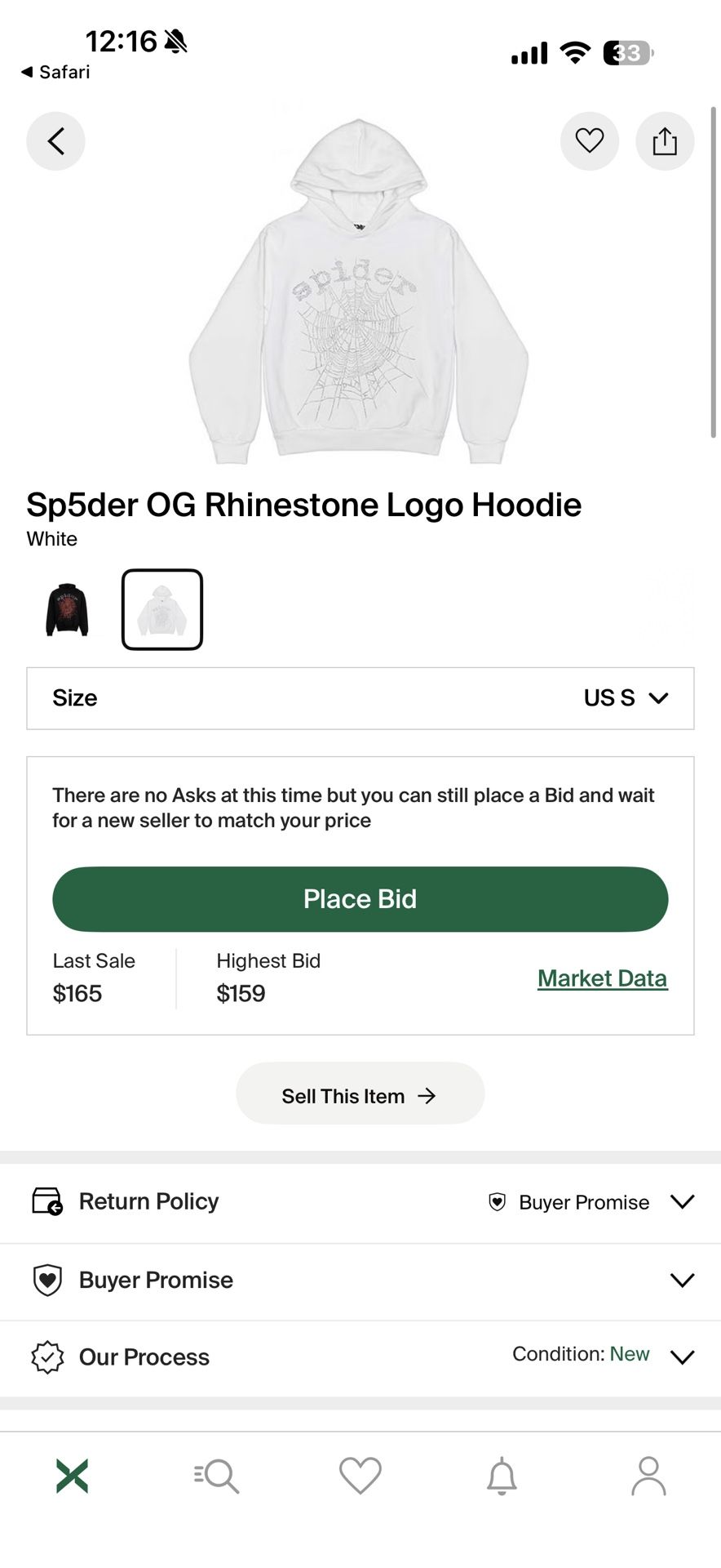 White Sp5der rhinestone web hoodie, size Small. Pre-owned. Overall good condition with a stain visible (see photos). No major flaws besides that. Bought from someone who stated it was authentic. I do not have proof of purchase, so selling as-is and priced accordingly.