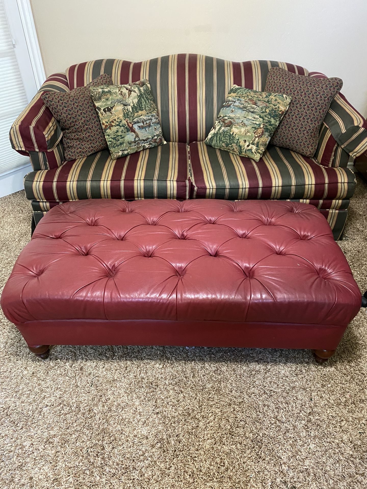 Red (garnet) Leather Tufted Ottoman