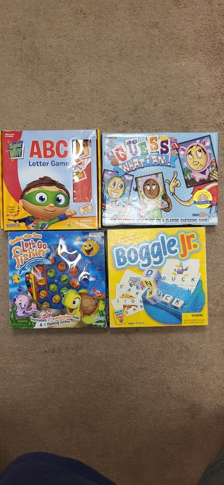 Games For Kids ( Let's Go Fishing / Boogle Jr./ ABC Letter Game / Guess What I Am). $10 EACH
