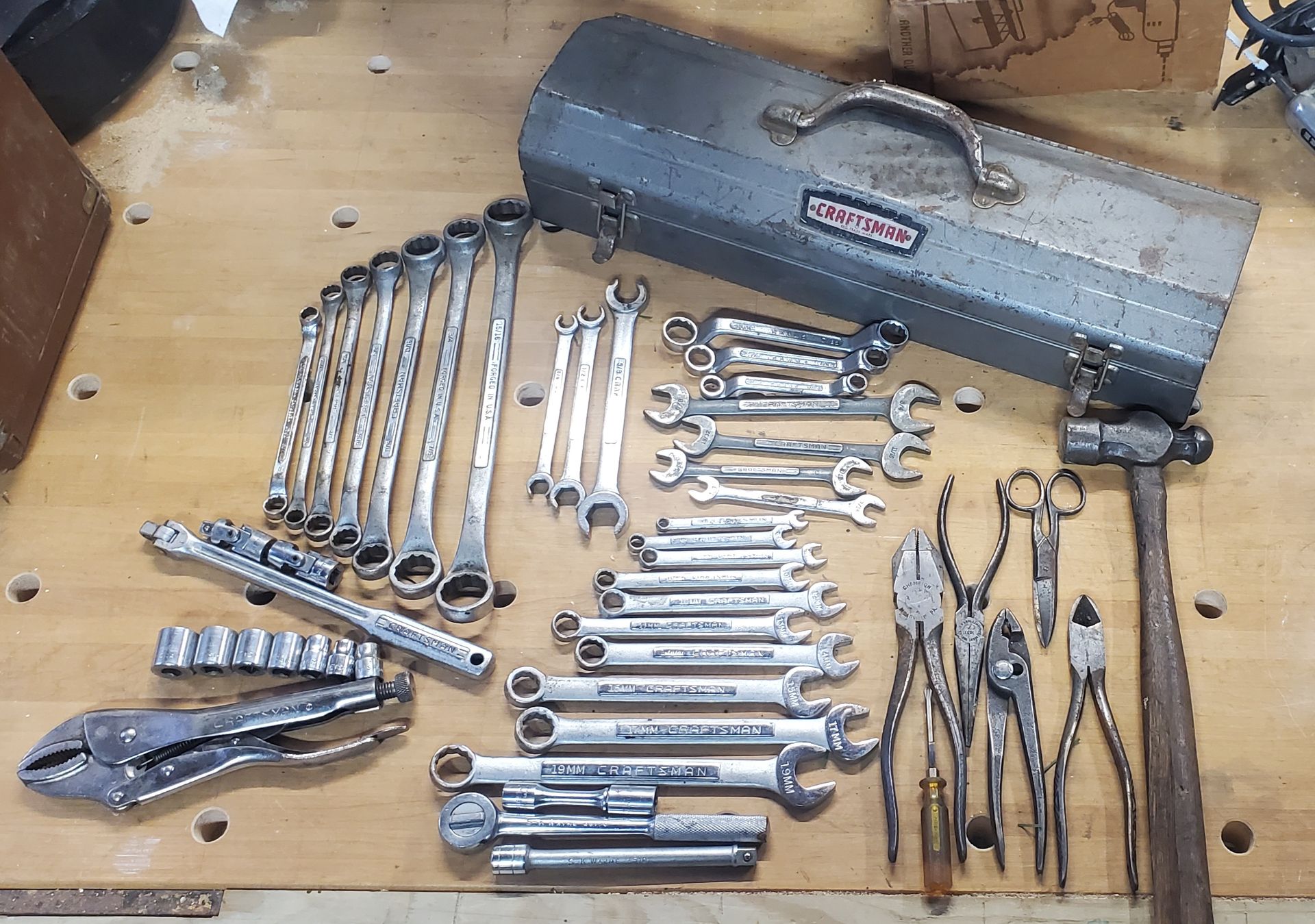 Craftsman 48 piece Tool Kit with Steel Tote Tool Box. 90% Craftsman pieces with a couple SK Wayne tools and Fleet USA Made! Mostly wrenches, some Sockets and Pliers etc..... Nice size Box to fit under vehicle seats or benches.. The 10 pc metric set is selling for $50 alone. ●Harper Woods - 48225 Zip Code between Harper and Beaconsfield area, super nice neighborhood, for local pick-up - cash and carry please. ●PayPal accepted to secure/hold items quickly. ●If using PayPal please note kindly add 3% to total please. And "items purchased" need to be picked up within 24 hours, or hold fees may be incurred. ●No Holds - FCFS - except electronic purchases, ie, PayPal or CashApp. ●check our other items for sale ●sold as-is. ●If interested please call or text me John @ five eight 6 two one 6 zero 4 four nine