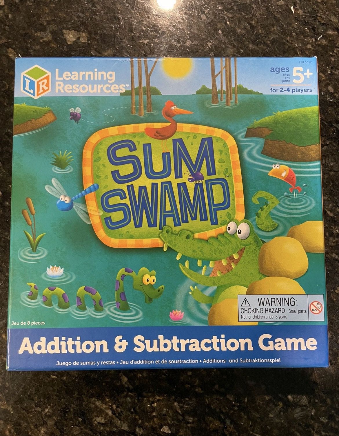 Pickup in Renton Fairwood area on the Kent boarder. The Learning Resources Sum Swamp Addition Subtraction Game is an award-winning game that takes kids on a journey through Sum Swamp by adding and subtracting numbers on dice. It includes a game board, four swamp creature game pieces, two number dice, and an operations die. The game is for 2-4 players in grades K and up.