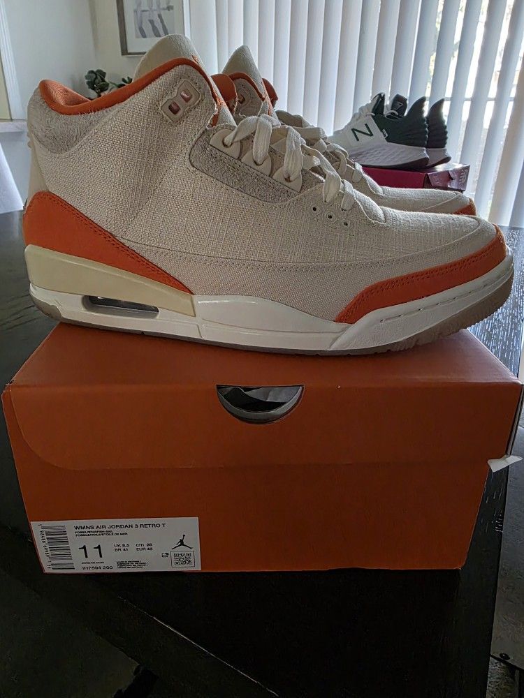 The Jordan 3 Women's "Starfish" (Style Code: IH7694-200) is a women's exclusive featuring a unique canvas upper in Fossil/Sail, accented with bold Starfish orange suede on the toe, heel, and eyelets, offering a fresh, textured take on the classic silhouette with premium feel, Nike Air cushioning, and translucent outsole for durable traction, celebrating MJ's iconic Italy game with its vibrant colors. Key Details & Specifications: Colorway: Fossil/Starfish/Sail Style Code: IH7694-200 Upper: Sturdy canvas base with hairy suede overlays and accents.