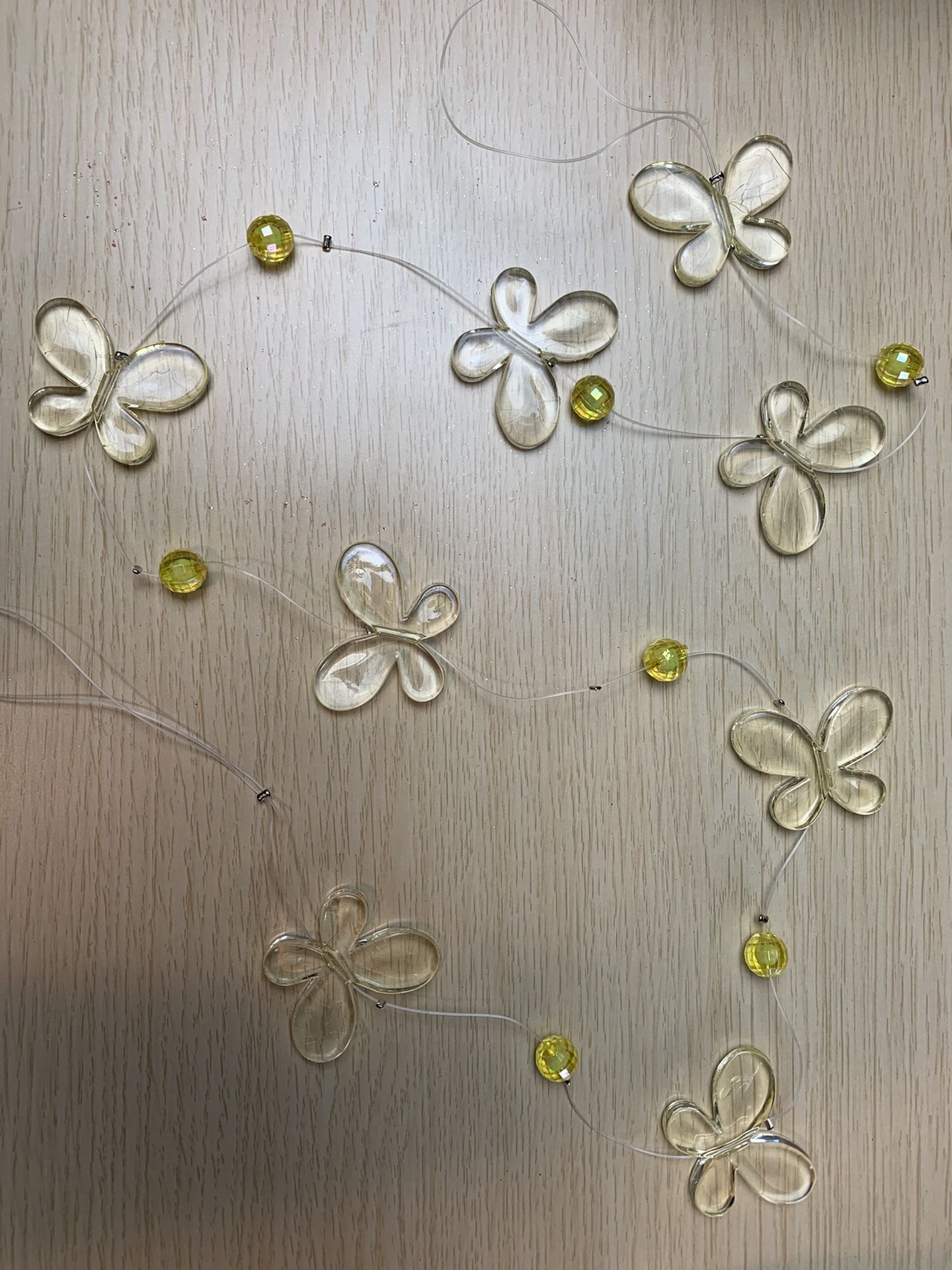 These butterflies are the perfect addition to any Christmas tree, cake topper or a perfect outfit. Lightly used, in almost perfect condition. Great for any age and perfect for any occasion. 8 Jewled butterflies per garland. $3 each garland 9 garlands in total Garland: 45” long Each butterfly: 1” x 1.75” 338