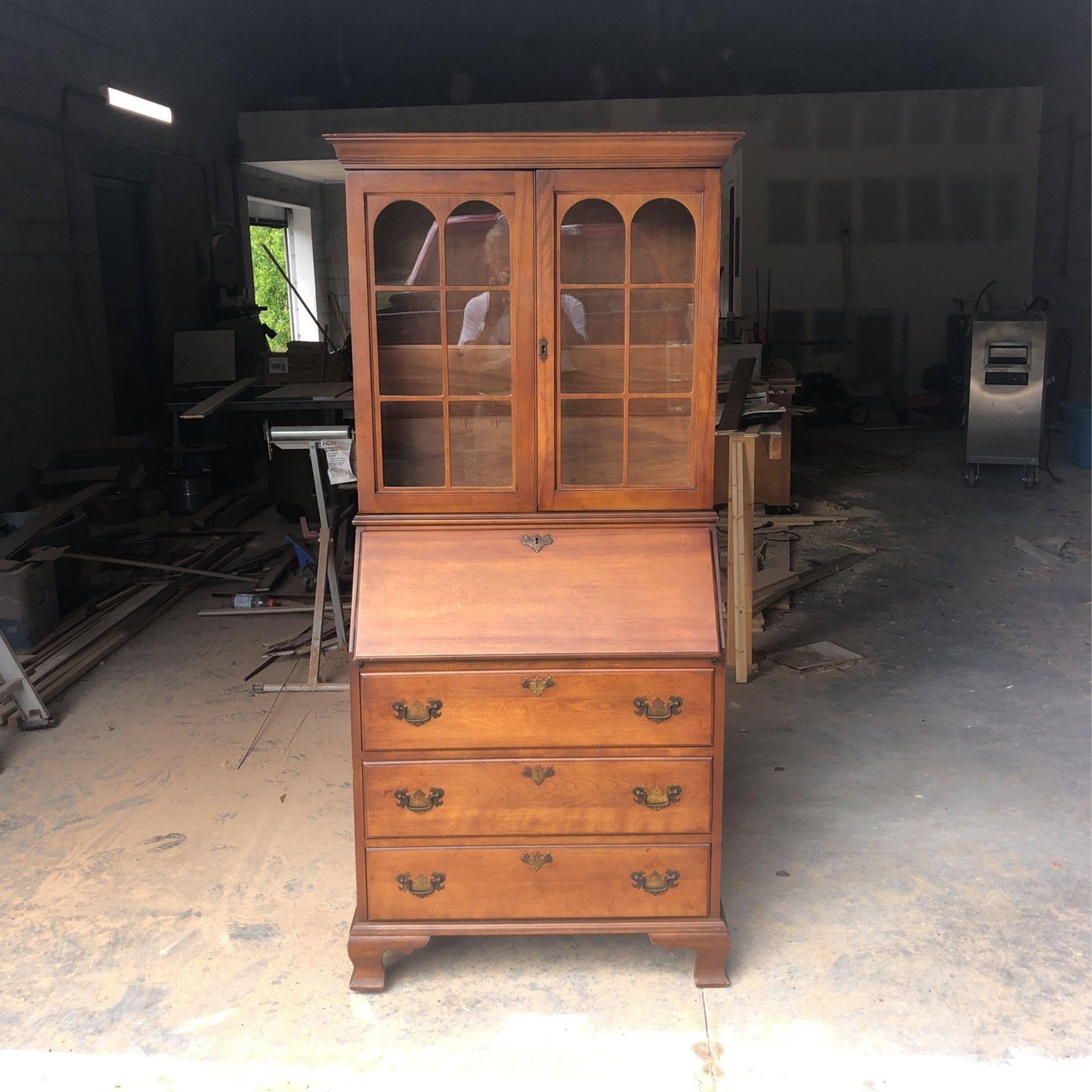 Well made solid wood and solid as a rock. Lock on the doors and fold down. It’s been in my family since it was built . I’m 67 and it was a wedding gift for my Mother .