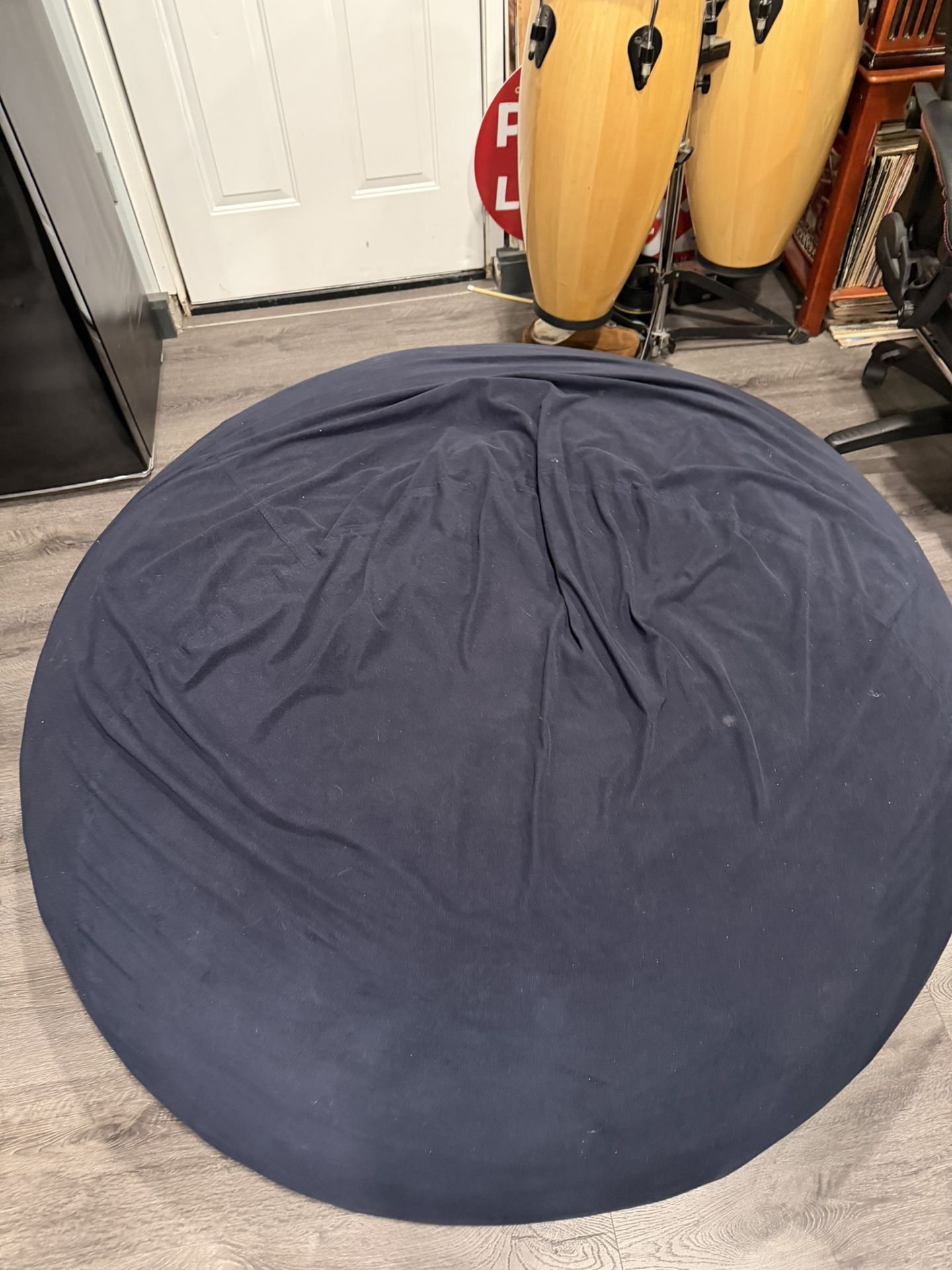 Navy blue super large like 4 feet approximately across. Light usage used for 2 college boys that preferred their gaming chair than the bag