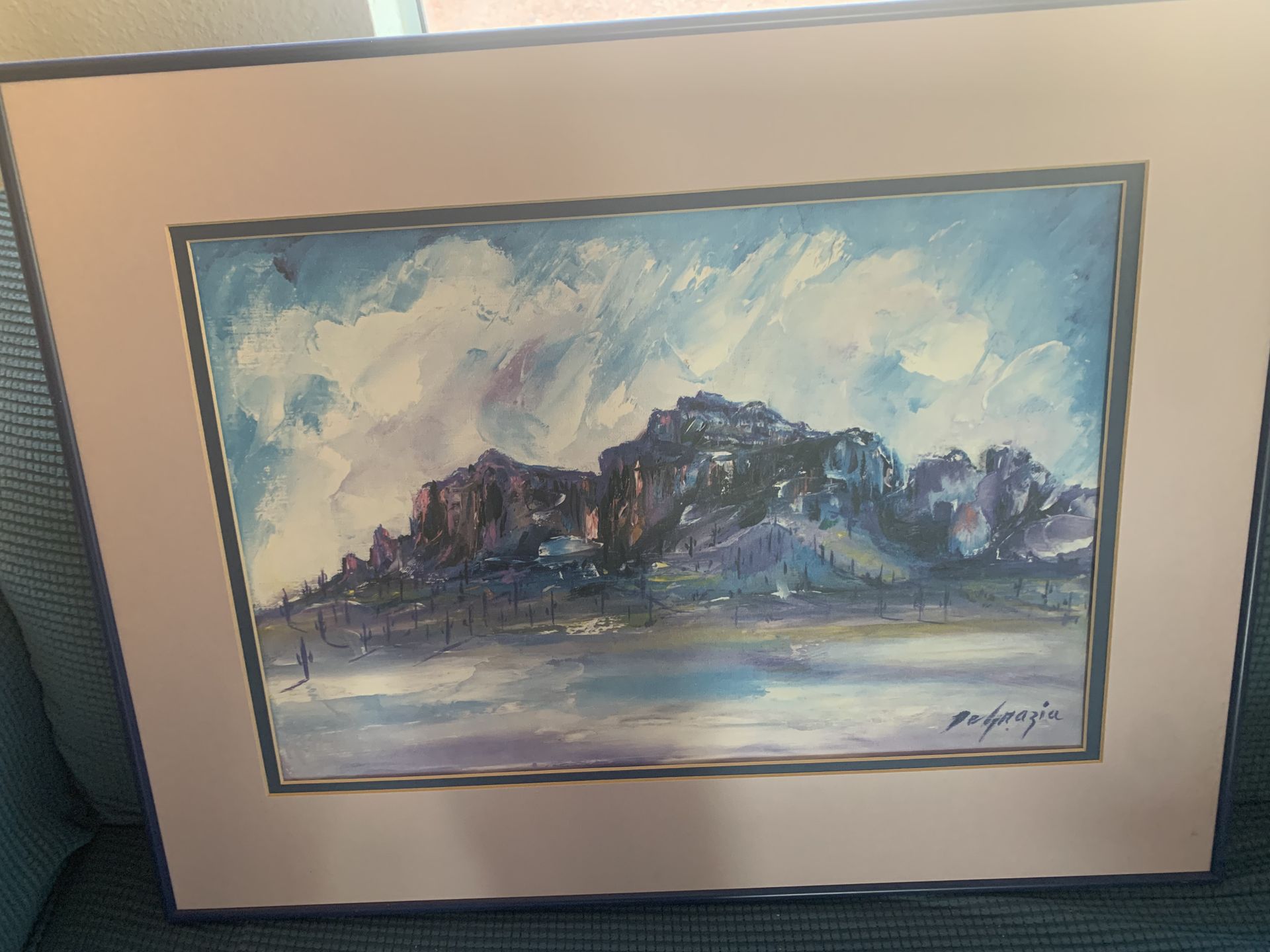 26 x 20 frame with print signed DeGrazia print showing his watercolor of Superstition Mountain