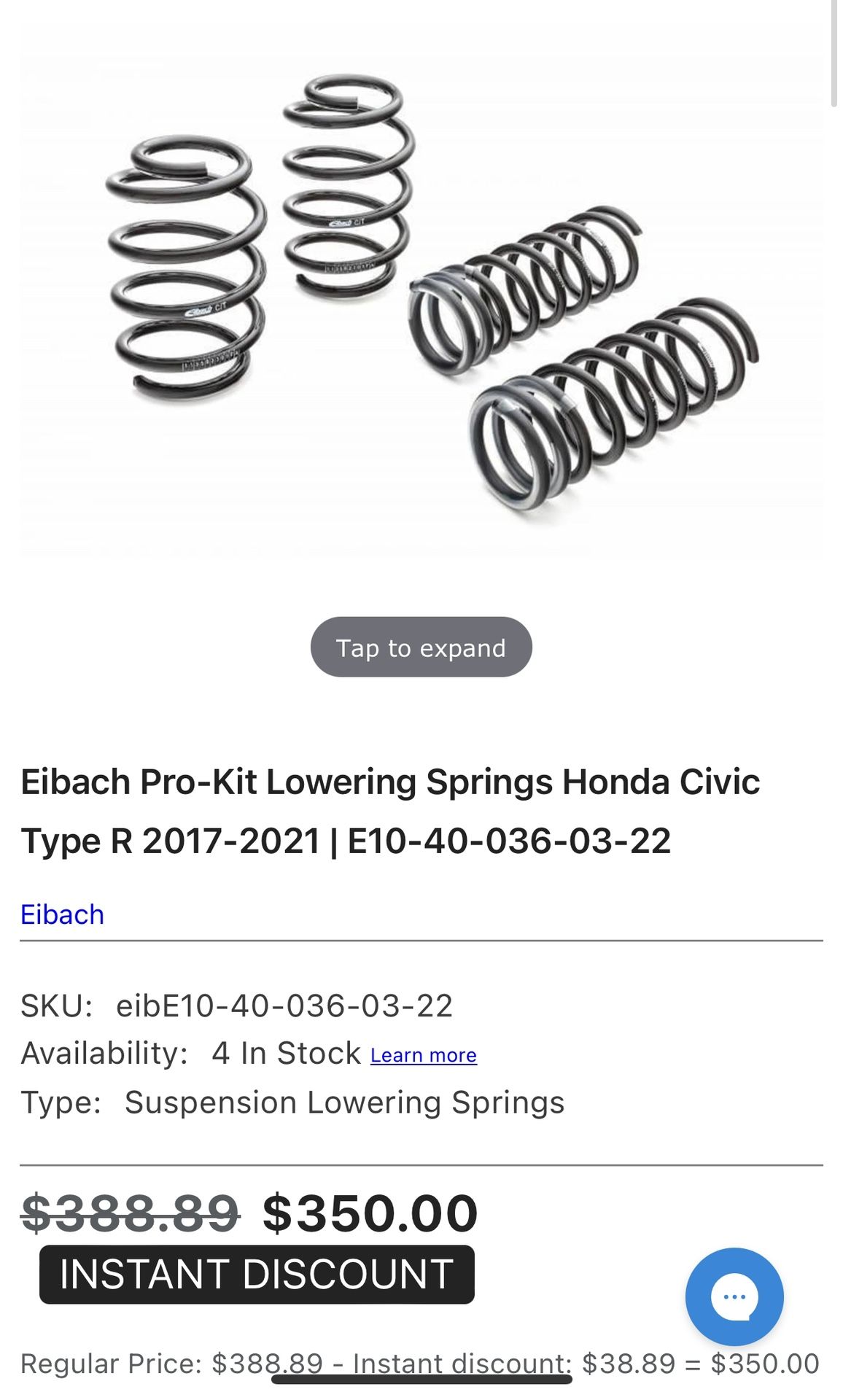 Eibach lowering springs for type r 2017-2021
