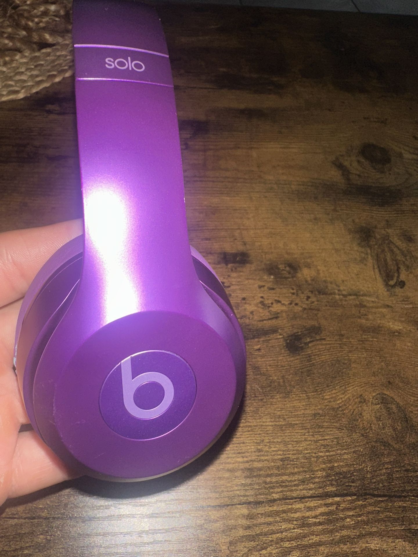 Beats Solo headphones, purple. Work good, sound is solid. Comes with carrying case.