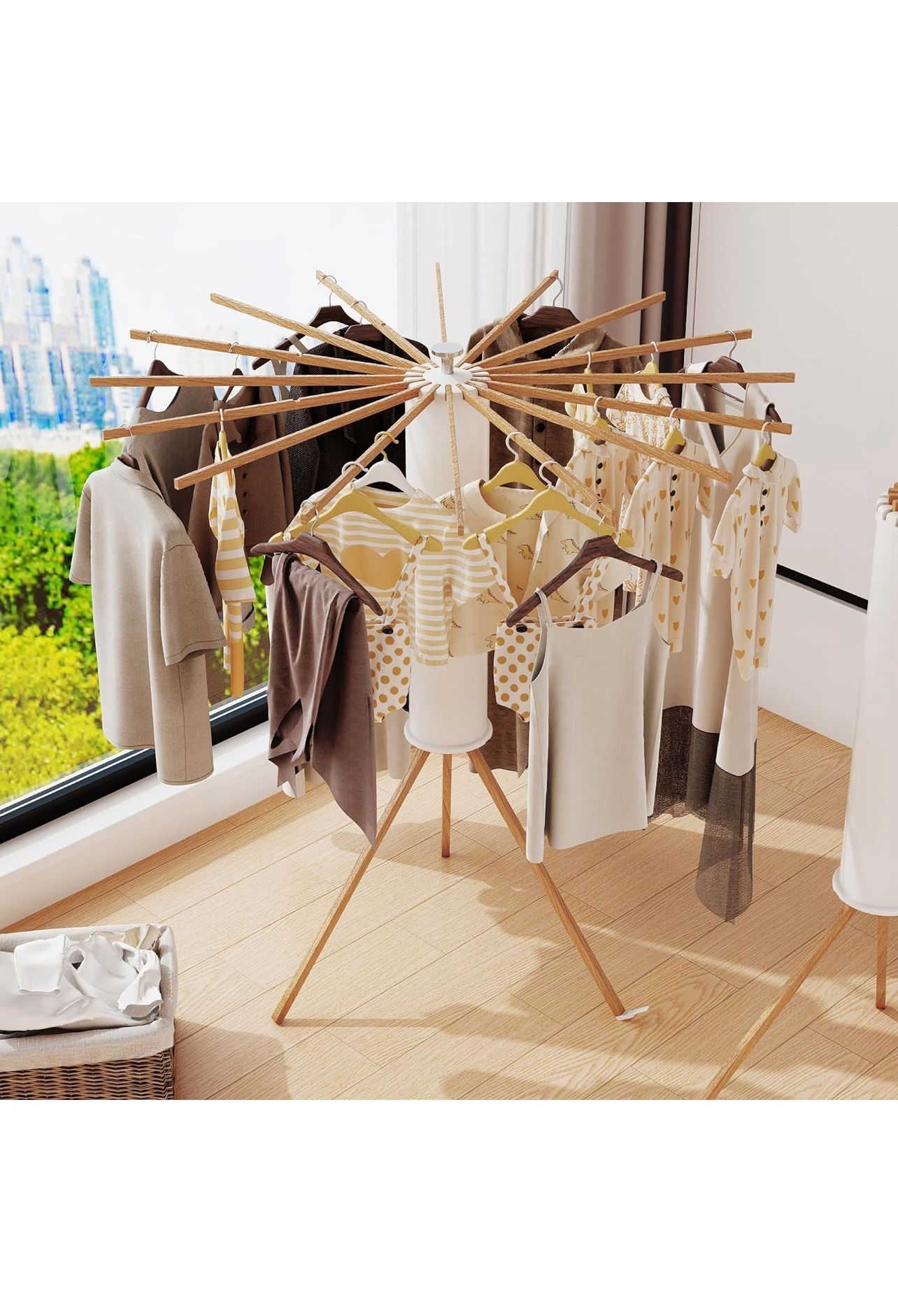 Clothes Drying Rack Tripod,Drying Rack Clothing,Laundry Drying Rack,Floor Standing,16 Wooden Poles,Collapsible Drying Racks for Laundry,Retractable,Fo