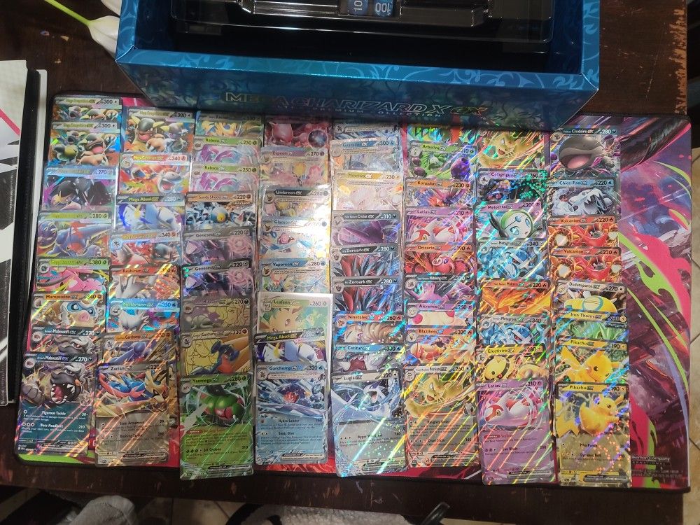 Pokemon EX bulk with charizard box that comes with mat, sleeves, dice and what you see in the pic. Open to offers.