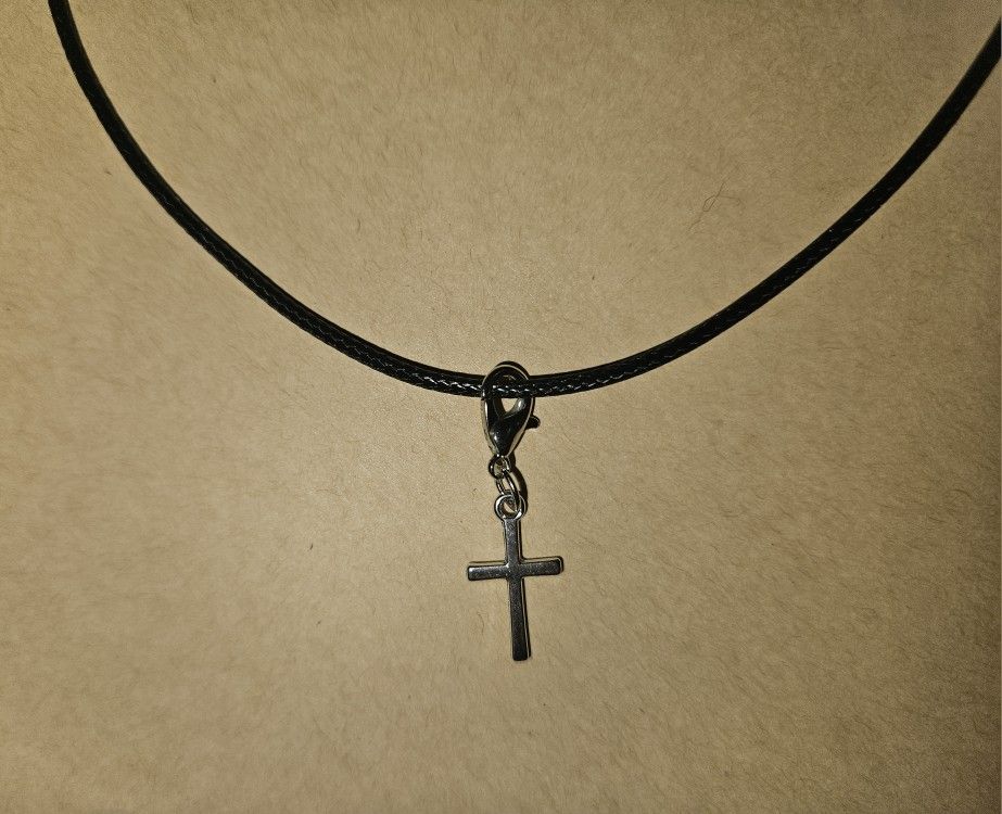 Silver cross charm with faux leather chord necklace. Necklace measure 17.75 inches with a 1.98 extension. I have more than one of these, if ur interested, plz msg me.