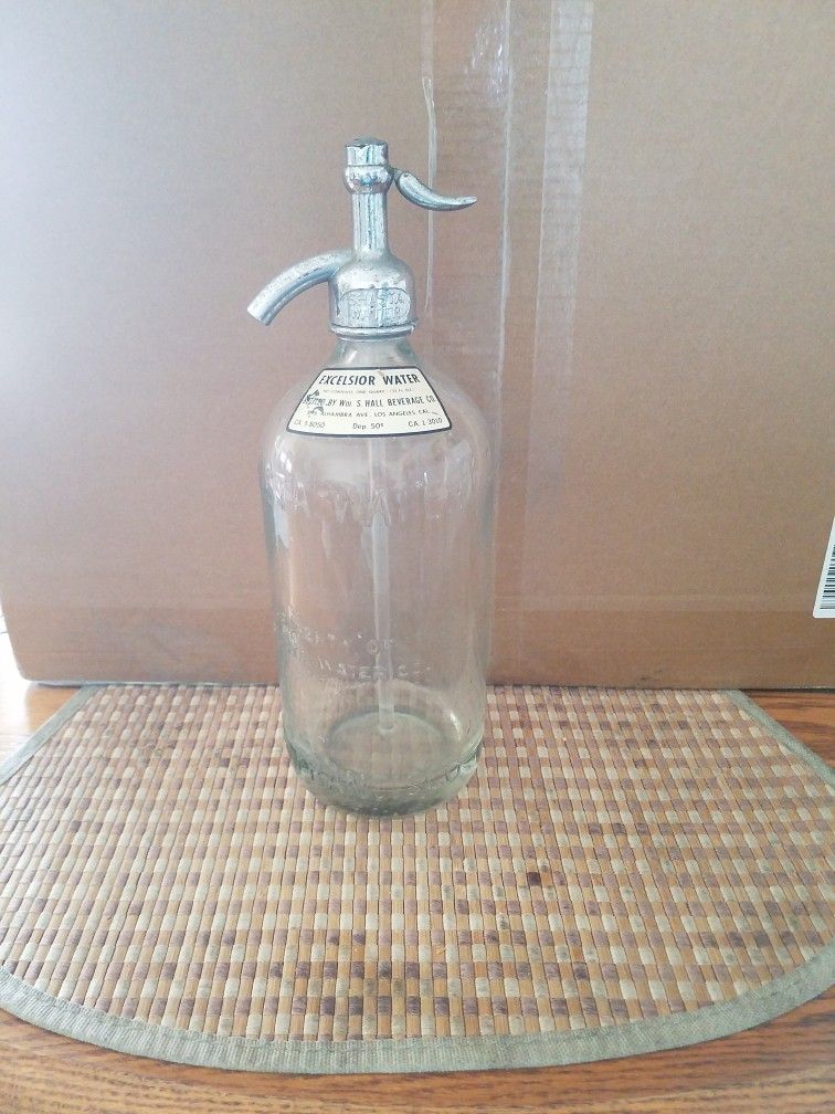 Shasta Water Bottle. Excelsior Water Distributed By William S Hall Beverage Company Los Angeles California.