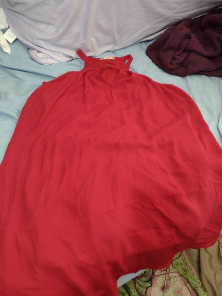 Like new beautiful red peach love California ladies sundress with lining. Front button with v opening. No holes, rips, tears or stains. Pick up or shipping available. Possible trade.