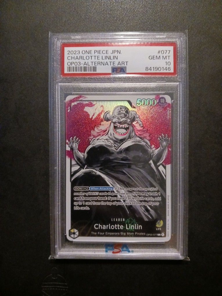 One Piece Card Game TCG Charlotte Linlin OP03-077 Alt Art PSA 10 Error Label
