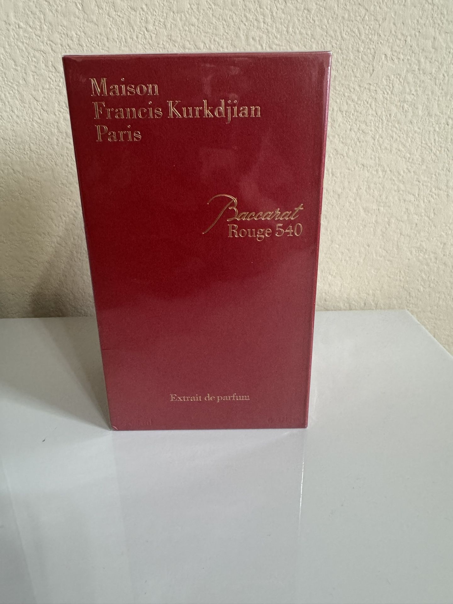 Maison Francis Kurkdjian Baccarat Rouge 540 Extrait de Parfum – 200ml – Brand New ✨ Authentic Baccarat Rouge 540 Extrait de Parfum by Maison Francis Kurkdjian in a large 200ml bottle. • Luxurious, highly sought-after fragrance with a rich, complex scent profile • Perfect for collectors or anyone who loves premium perfumes • Factory sealed, unopened, and ready to elevate your fragrance collection • Includes original packaging and receipt for authenticity 💵 Price: $500 (firm) 📍 Local pickup or shipping available — message me for details! Retails for about 1,000