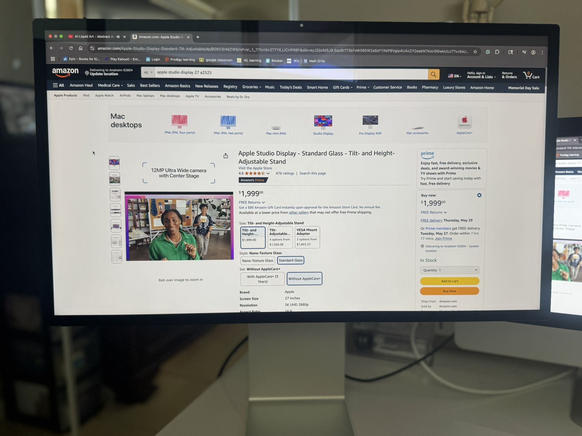 Apple Studio Display 5K UHD 2880p - Standard Glass - Tilt- and Height-Adjustable Stand