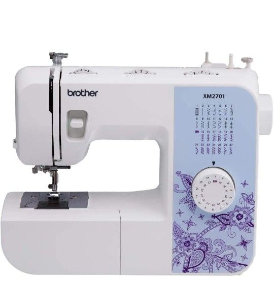 27 Unique built-in stitches: The XM2701 includes 27 built-in stitches including decorative, blind hem, zigzag, and stretch stitches and an auto-size buttonhole Automatic needle threader and drop-in top bobbin: This sewing machine includes an automatic needle threader that perfectly pushes the thread through the needle and a convenient, jam resistant drop-in top bobbin Included accessories: The XM2701 comes with 6 sewing feet, 3-piece needle set, twin needle, 4 bobbins, instructional DVD, manual and more Versatile free arm: This free arm sewing machine is perfect for a wide range of everyday sewing projects, and users from beginners to advanced At your side support: The XM2701 sewing machine comes with Brother At your side support offering free technical support via online, live chat or phone for the life of your machine This product is intended for sale only in the US at 120 volts, and any other use or sale voids the warranty.