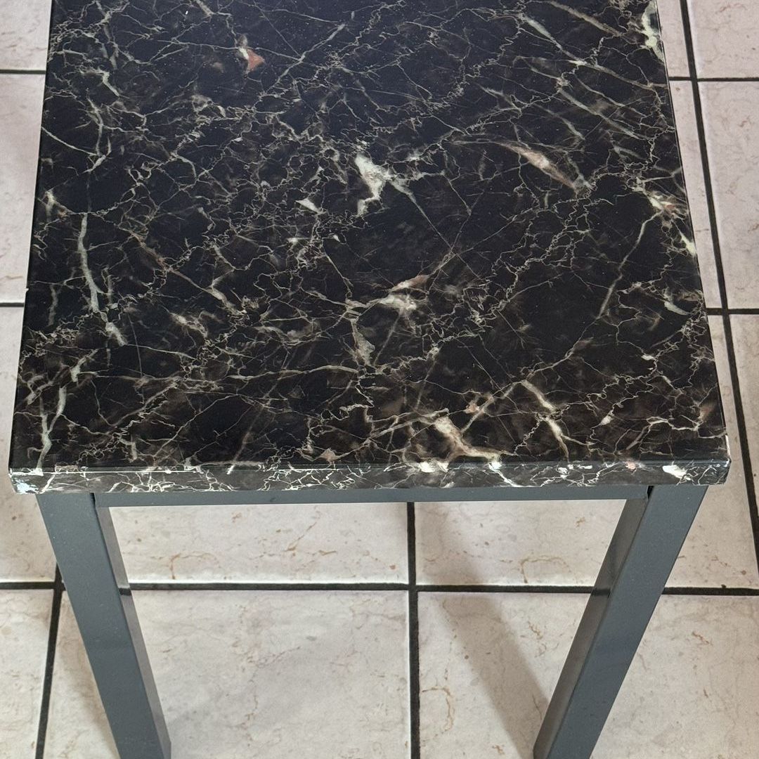 The faux marble tabletops Small Coffee, Tea Table, Great For Kids Coloring Etc Final Sale Sold as is No Returns I am Bilingual English/Español Soy Bilingüe Measurements Approximately~ Measurements/Medidas Length 19inch Width 19inch Height 21 inch 3/4 Pick Up Only/Solor Para recoger Thanks For Viewing/gracias por mirar!