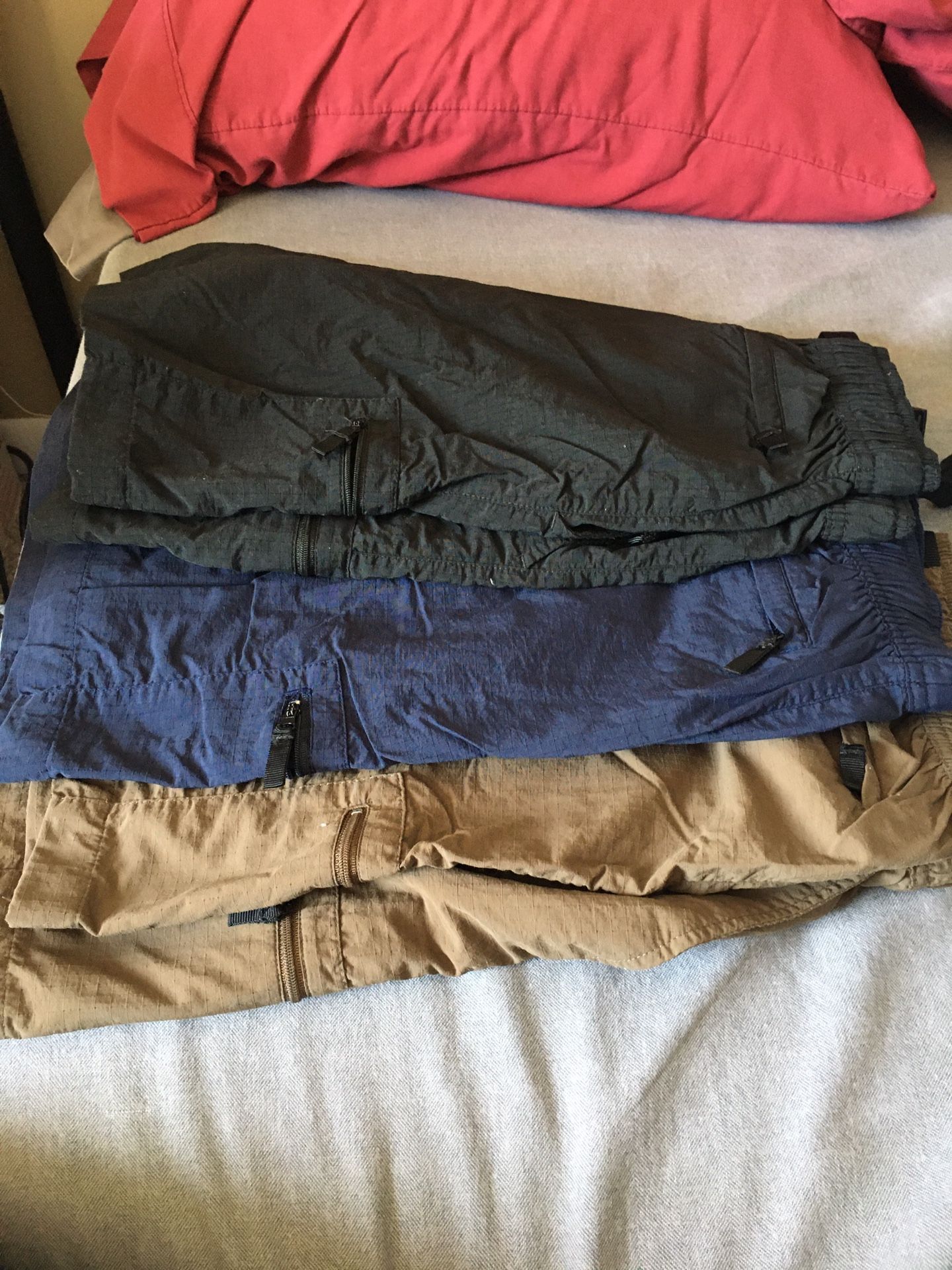Cherokee Brand Men’s 100% Nylon Cargo Shorts - Size L - Comfortable in the summer heat - Added button closure - 3 shorts available ($5ea. or ALL 3 for $12) - Colors: Black, Blue, Army Green - Note: Removed the Polyester inner lining