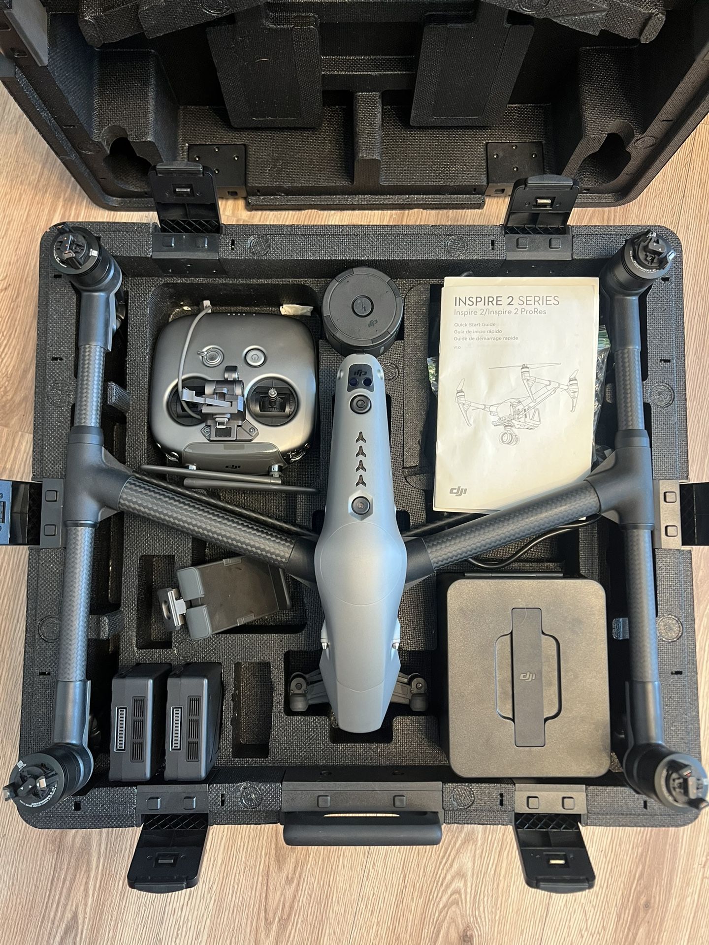 DJI INSPIRE 2 Everything works, includes 2 batteries, can be tested prior if serious about purchasing. DJI's magnesium-aluminum-clad Inspire 2 Quadcopter is a powerful cinematic and photographic tool. Combining the Inspire 2 with the separately available X4S and X5S gimbal cameras yields cinema-grade images, which can be recorded in high bit rates using H.264 and H.265 formats, or, in the case of the X5R, various flavors of Apple ProRes and CinemaDNG raw using the required licenses available from DJI. All the recording functionality is processed by the Inspire 2's CineCore 2.0 image processing engine. Not all the power to be found in the Inspire 2 is in the recording functionality. DJI beefed up the flight capabilities of the Inspire 2. Able to accelerate to 50 mph in 4 seconds and reach a top speed of 58 mph, the Inspire 2 can follow fast-moving subjects for dramatic sports and action footage. The flight prowess of the Inspire 2 doesn't come at the expense of battery life. With the two included LiPo batteries onboard, up to 27 minutes of flight time can be had on a full charge. Advanced obstacle avoidance has also made its way to the Inspire 2. Built into DJI's FlightAutonomy system, objects in front of, below, and above the quadcopter can be detected and avoided automatically. The Inspire 2 can even remember flight paths in case of an emergency return-to-home without GPS enabled. What's more, using the onboard 2-axis stabilized FPV camera, the pilot can navigate the Inspire 2 without being limited to the gimbal camera's field-of-view. Everything you need to set up your Inspire 2 is included. Two batteries with a charger, an all-new transmitter controller, extra propellers, a calibration plate, and a carrying case to store and transport everything. Advanced Obstacle Sensing Forward and downward vision systems enable the Inspire 2 to detect obstacles up to 30 meters ahead, allowing for protected flight at up to 34 mph at a controllable attitude angle of 25°. Upward-facing infrared sensors scan obstacles 16' above, adding protection when flying in enclosed spaces. Obstacle-sensing systems are active during normal flight, RTH, and all Intelligent Flight Modes. Spotlight Pro Spotlight Pro is a powerful tracking mode that allows even single pilots to capture complex, dramatic images. It uses advanced, visual-tracking algorithms to lock onto a subject during flight, regardless of the direction that the Inspire 2 flies, creating shots that would once have required a dedicated camera operator. If the gimbal comes close to reaching its rotation limits, the Inspire 2 itself will rotate in the same direction without affecting flight control or the shot being captured to free up gimbal movement. Spotlight Pro has two shooting modes: Quick Mode and Composition Mode. In Quick Mode, select an object to begin tracking. In Composition Mode, select the subject and the tracking position. When the subject enters the preset tracking position, press the shortcut to begin tracking. The gimbal can be moved during shooting for composition adjustments. Spotlight Pro is available in all Intelligent Flight Modes including ActiveTrack, TapFly, Waypoint and Point of Interest. TapFly The 2-axis onboard FPV camera separates the flight view from the main camera view, effectively giving the Inspire 2 a dedicated "tap-to-fly" camera. Tap a point onscreen in the FPV view to set a flight route and the Inspire 2 will automatically fly along that route, leaving the pilot to focus on gimbal movement. ActiveTrack The ActiveTrack Mode allows the Inspire 2 to recognize a range of objects, from people to bikes to cars to boats. Tracking profiles that can be adjusted based on the subject being tracked means greater tracking precision. Smart Return Home Forward and downward vision systems allow the Inspire 2 to create a real-time map of its flight route as it flies. If the video transmission system signal is lost and Smart Return Home is enabled, it is able to fly home along its original route and change to a straight line when it regains a signal. As it returns, it will use the primary camera to identify obstacles as far as 200m in front, allowing it to plan a safe route home. It is also able to reconnect more quickly after losing connection. Video Transmission System The Inspire 2 features DJI's Lightbridge technology. This iteration has an effective transmission distance of up to 4.3 miles (under ideal conditions) and is capable of delivering both 1080p/720p video as well as the FPV view to pilot and camera operator. Users can also switch between 2.4 GHz and 5.8 GHz control frequencies to avoid interference for greater signal stability. Master and Slave setups are also supported. The master controller can transmit an HD video signal to the slave controller up to 300' away without image quality loss. Broadcast Mode Broadcasters can broadcast direct from the Inspire 2 using its dedicated 1080i50 and 720p60 transmission signal. Aerial live