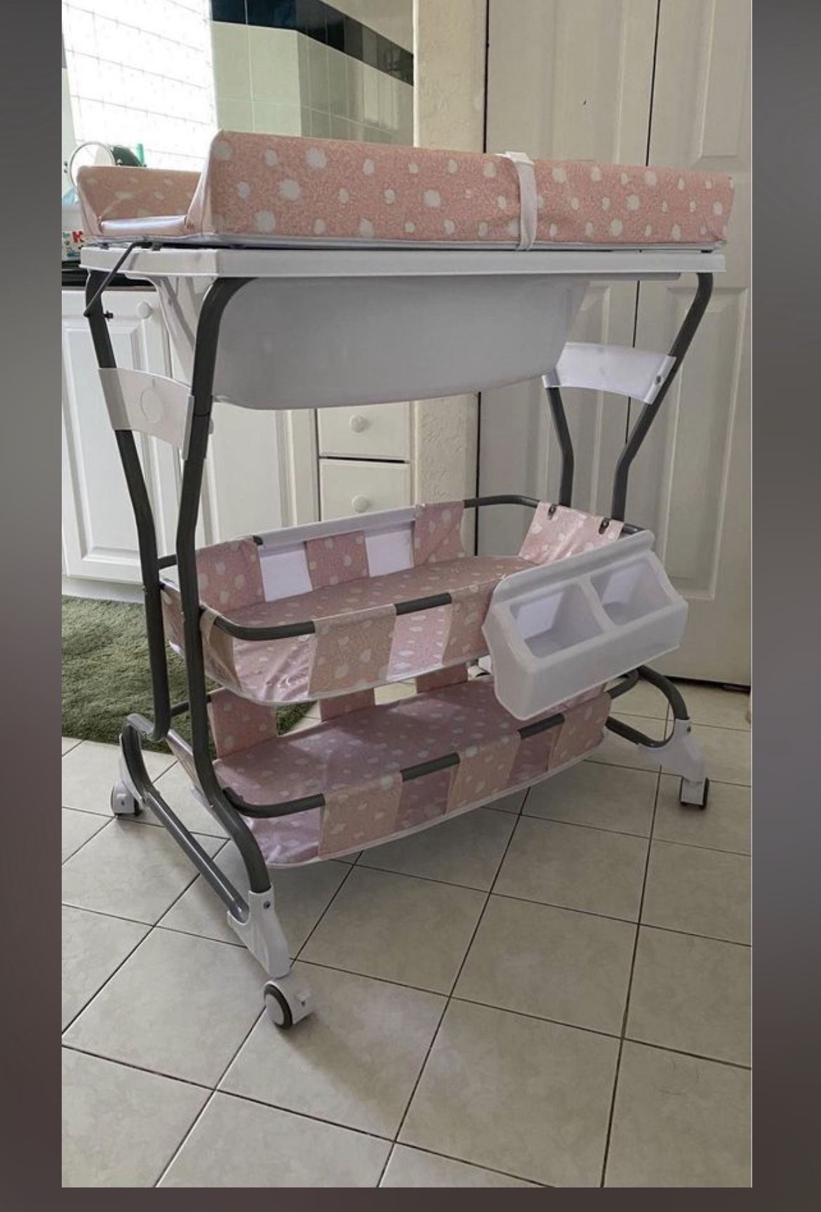 Baby bathinette with changing table Portable baby bath on wheels Like new never used