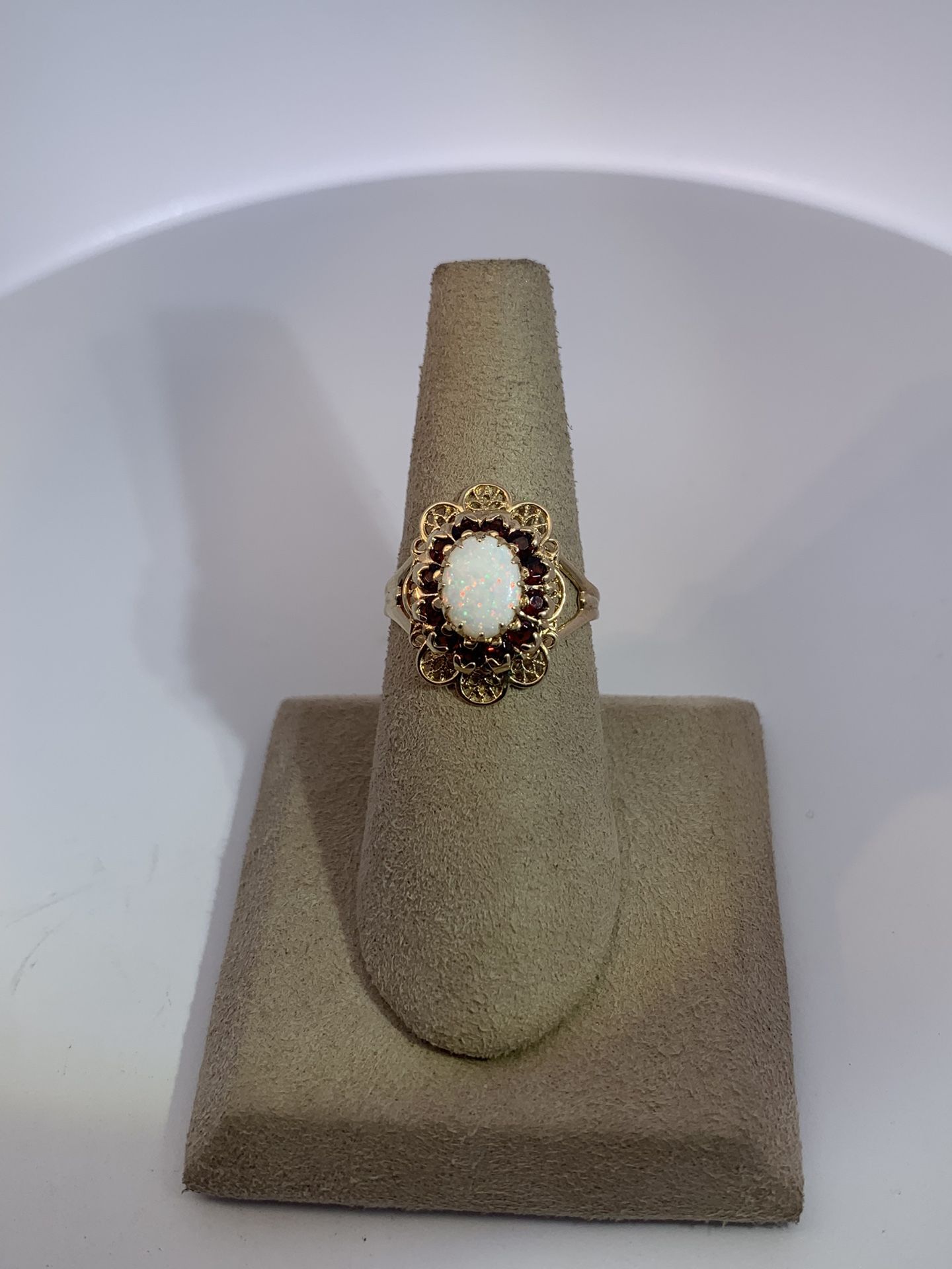 10k yellow gold lady’s opal and topaz vintage looking ring size 7