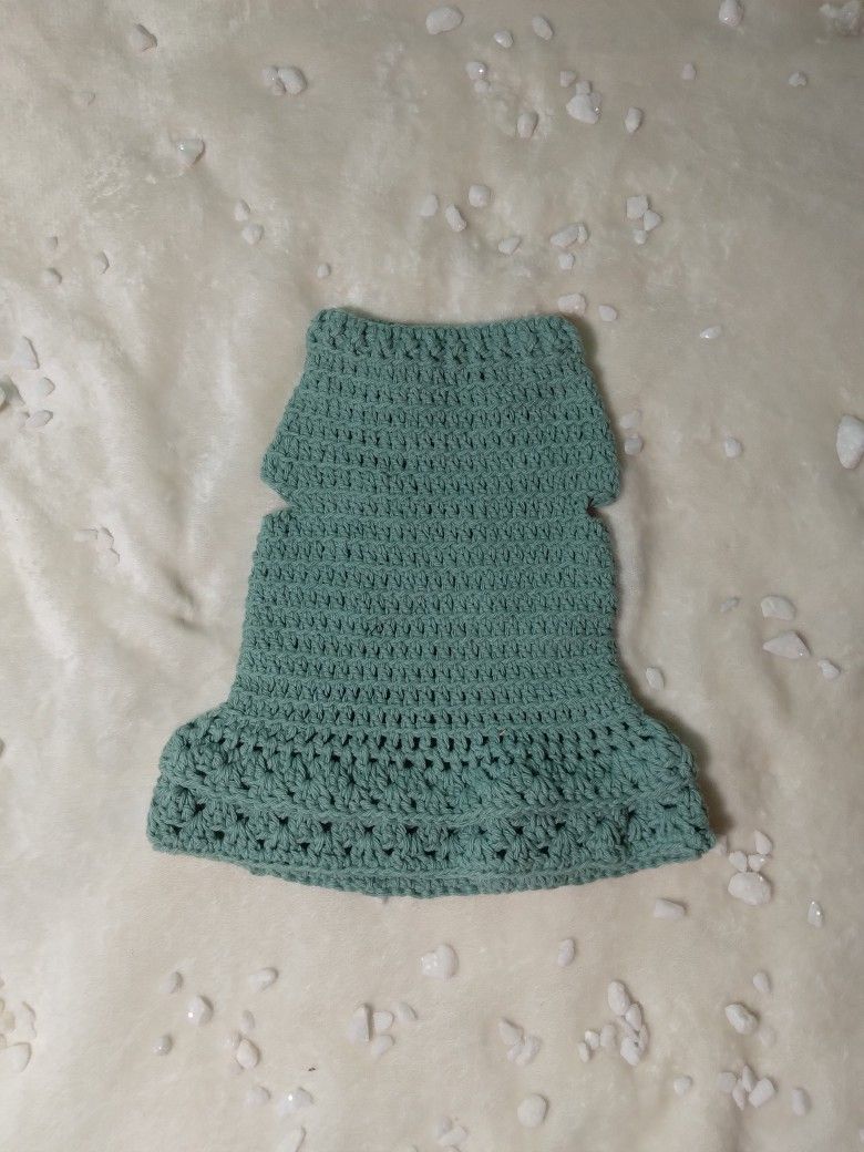 Beautiful green hand Knitted Dog & Cat dress Measurements are in pictures Perfect for medium-sized dogs & cats Feel free to message if you have questions Check my page for more sweaters and dresses SE HABLA ESPAÑOL