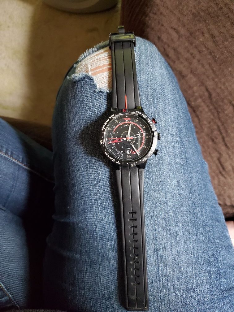 Timex T2N720 Men's Black Analog Watch Indigo nightlight,tide, compass, water proof up to 100meters. Needs battery. Good condition. I don't have the manual anymore. $50 Takes a cr2016 battery