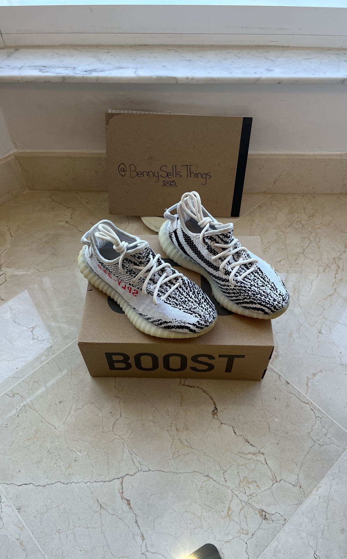 Adidas Yeezy Boost 350 V2 “Zebra” (US 4.5) in very good condition with minimal wear. Please note, it doesn’t come with the original box; I’m including a different Yeezy box (black/red) in the same size. Open to offers or trades 🤝💬. Message me for more photos or details!