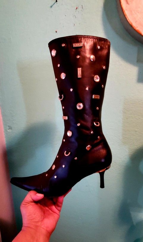 Luciano Padovon Designer Black Studded Bling Boots..Size 8 Womens..Like New!