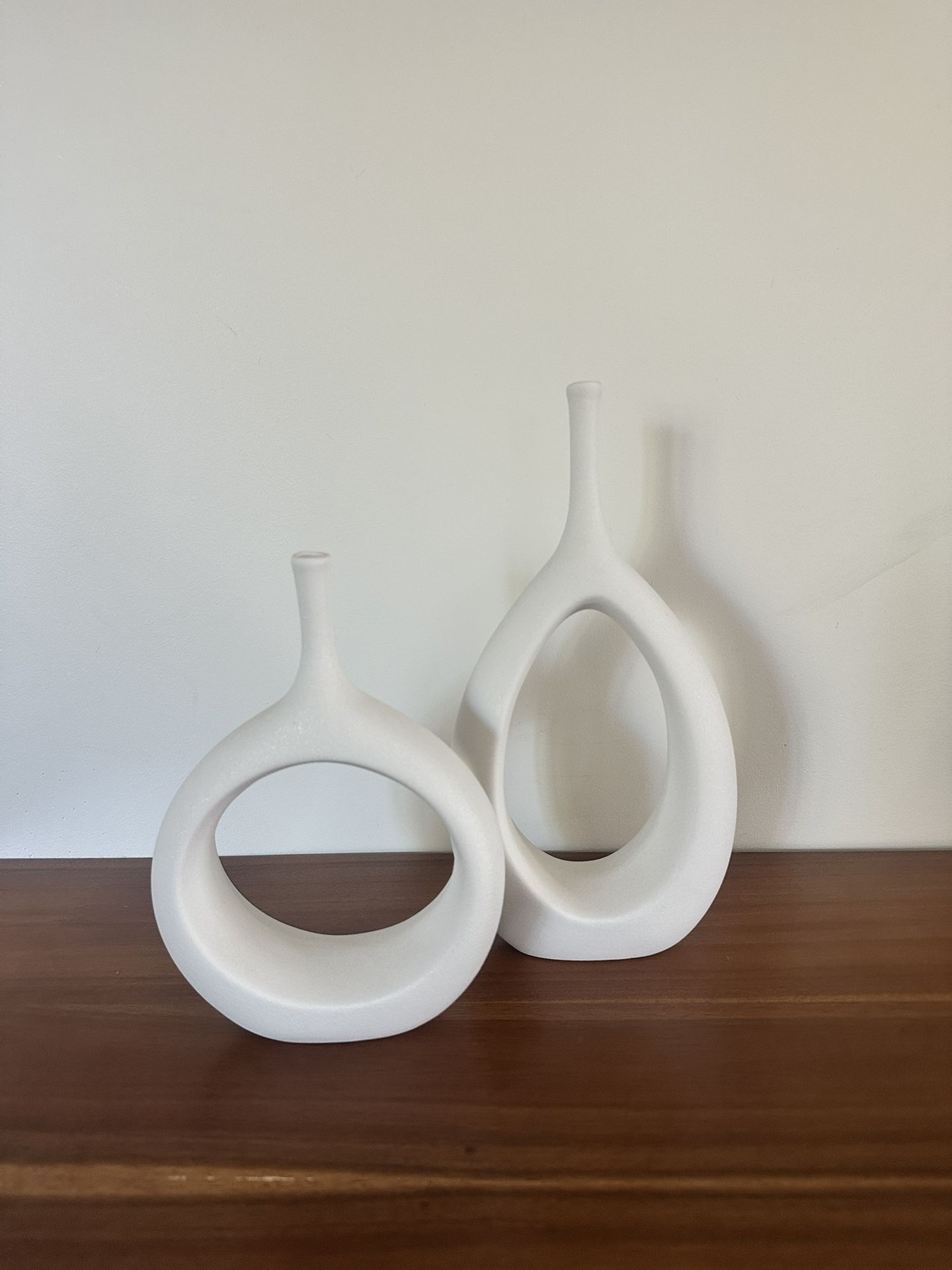 White Ceramic Hollow Vases Set of 2 Modern Decorative Vase