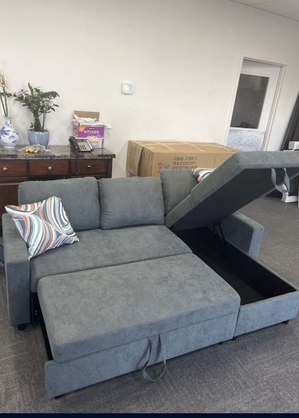 Grey Microfiber Sectional Sleeper Sofa Couch With storage