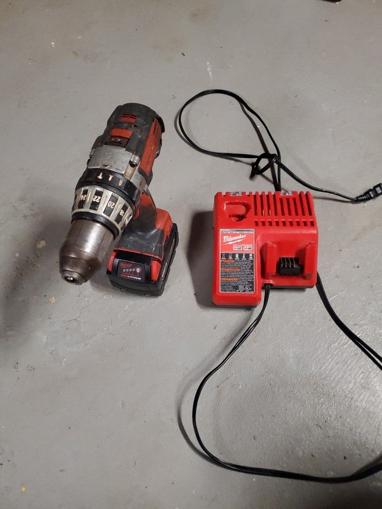 Milwaukee M 18 VOLT hammer Drill With Charger & Xc 5.0 Battery Used Working Well
