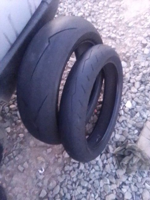 Pirelli Diablo supercorsa in good condition .70% tread left.Rear size is 200/55/zr17.Front size is 120/55/zr17.asking $40 for the set.