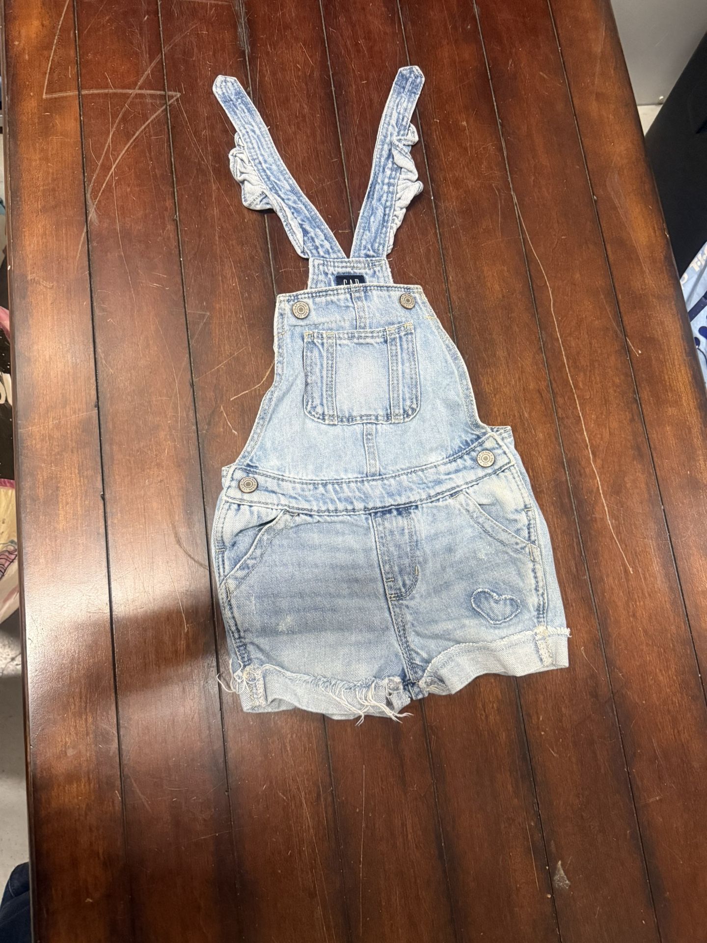 Gap Kids Blue Denim Overalls Shorts Size 12-18 Months Distressed Shortalls