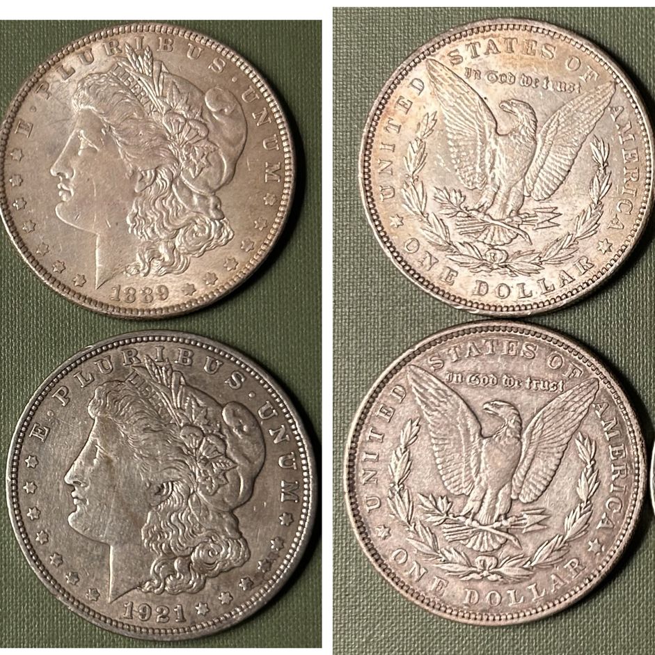 4 Morgan Dollars as pictured 2x89, 90, 21