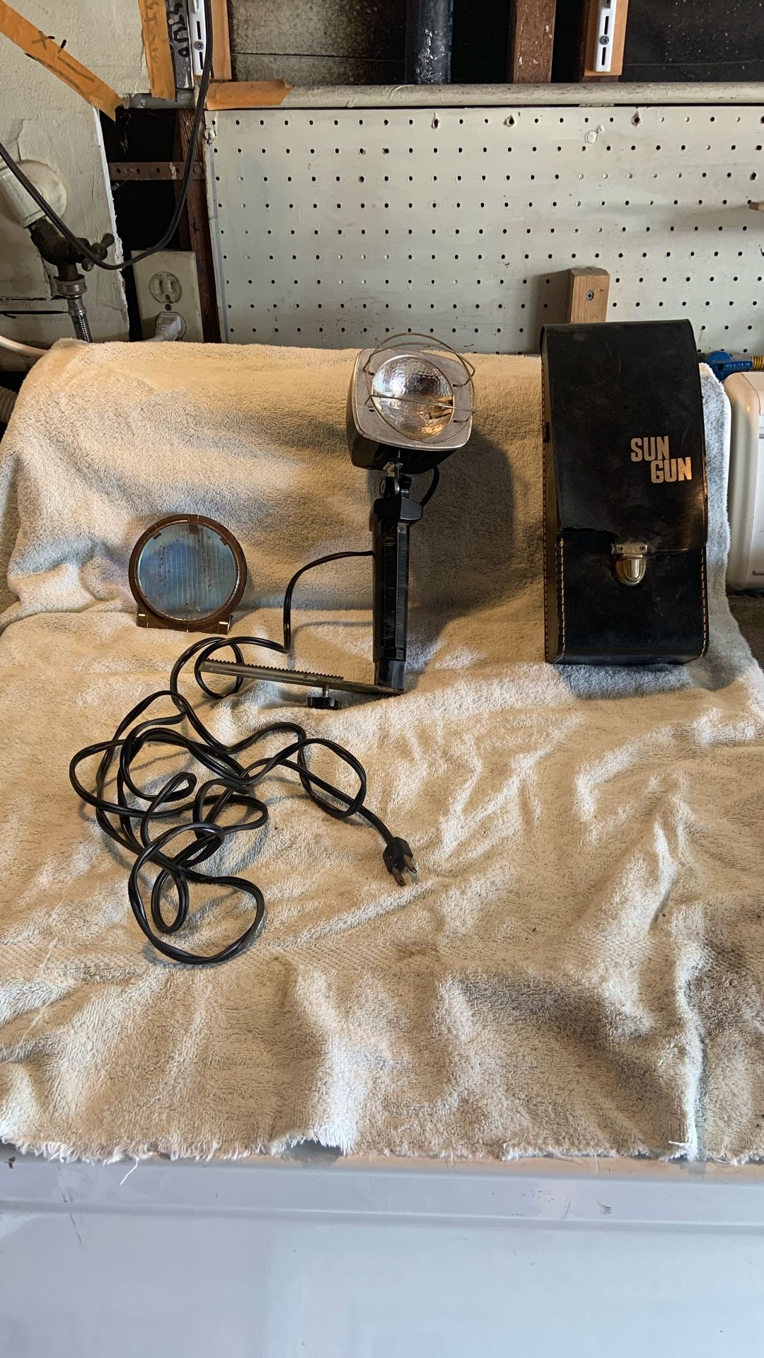 Sylvania Sun Gun 2 movie light Vintage professional hand held movie filming light SG - 55 This is the Brightest Light that I have ever seen. Lights night time into daylight for filming requirements