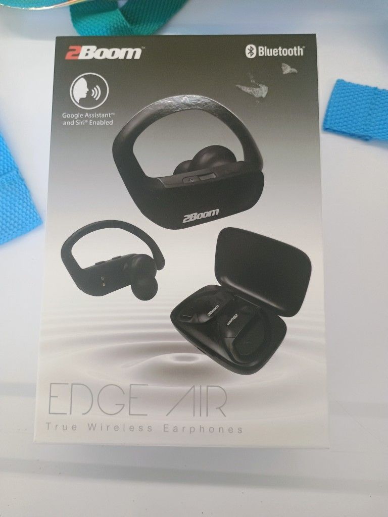 2boom Edge Air Ear Buds Google Assistant and Siri Enabled Bluetooth Version 5.3 Wireless Distance 32.8 feet Working time 3-4 hours Charging time 1-1.5 hours I use these exact ones New in box never opened I have 4 black left and 4 white left